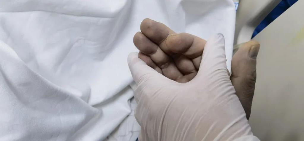 ▲入院后,李先生的手也呈现蓝黑色。