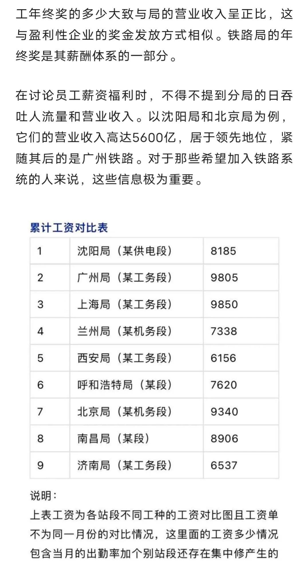 需要注意的是,不同站段的工资收入还会受到多种因素影响,比如专业站段的不同等,因此具体的薪资待遇可能会有所差异。一般来说,机务、供电、电务、车务等专业领域的收入会更高。