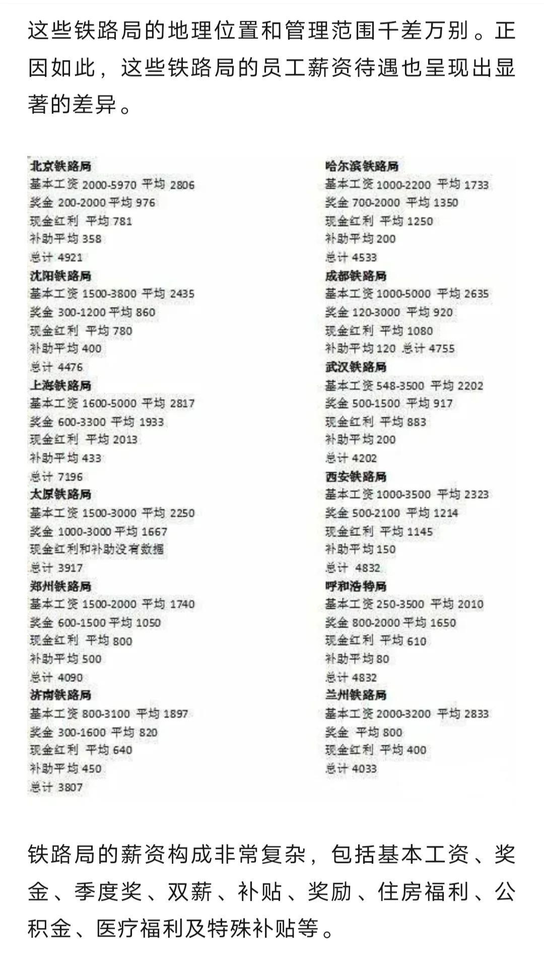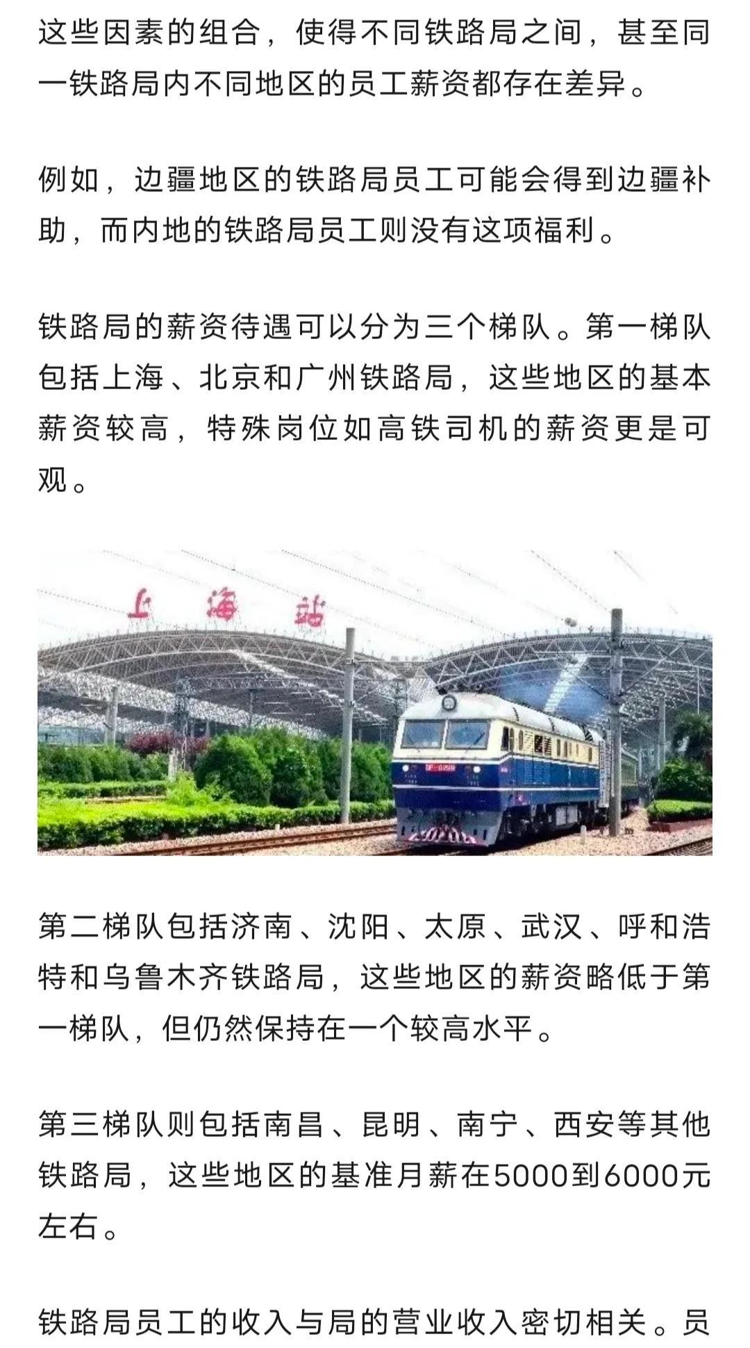 全国铁路局职工的薪资待遇大致可以划分为三个梯队: