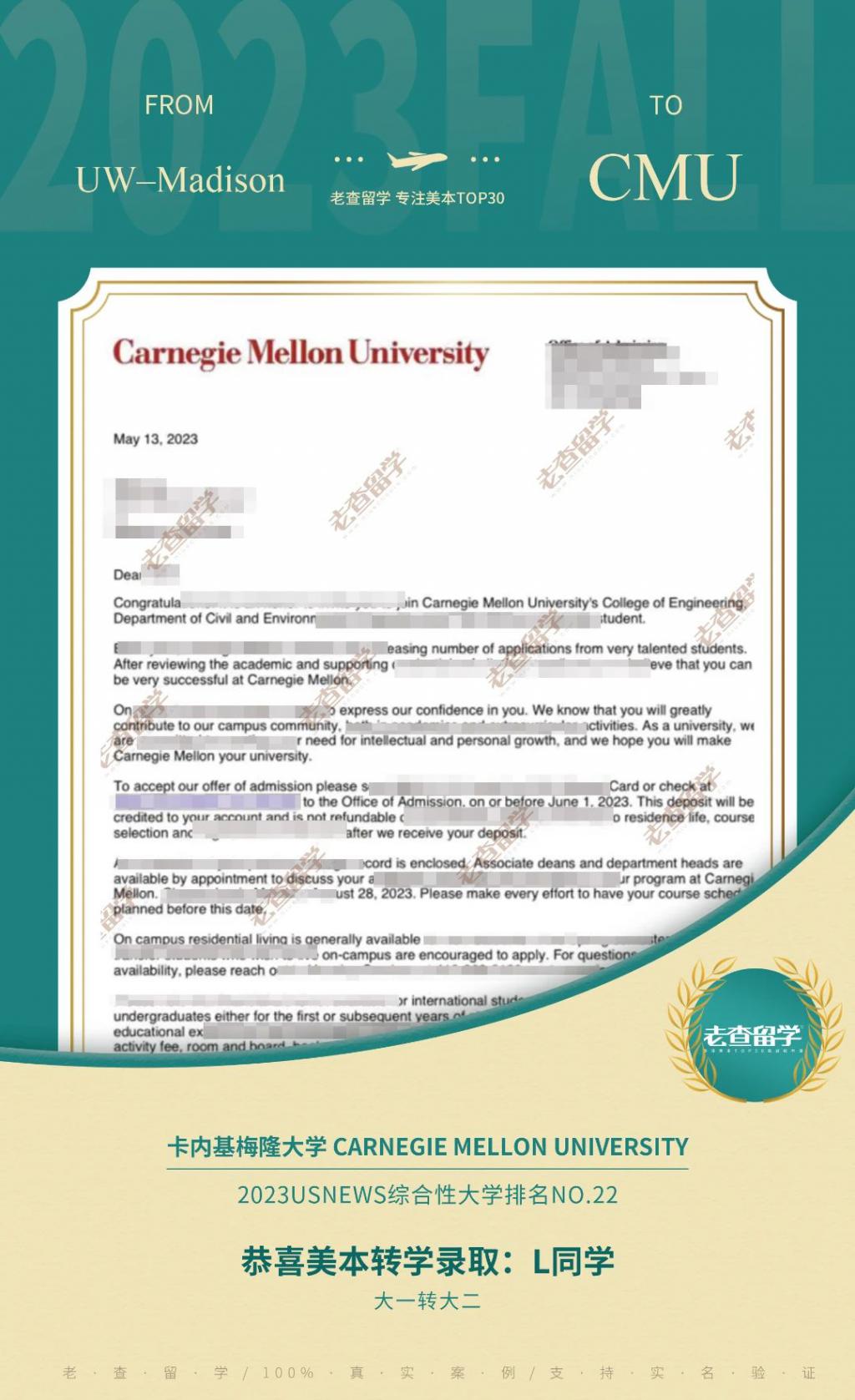 转学 Offer 到!恭喜老查留学收获藤校宾夕法尼亚大学、计算机牛校卡耐基梅隆大学转学录取!