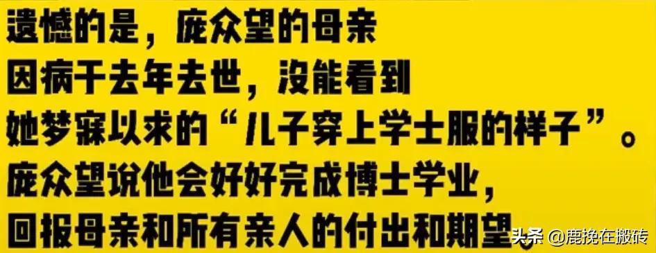 遗憾的是庞众望母亲,去年因病去世,没能看到她梦寐以求的“ 儿子穿上学士服的样子 。”