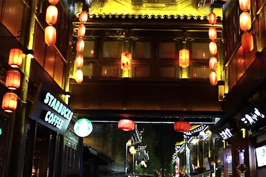 锦里是西蜀历史上最古老的街道之一,街道两旁是各色明清外貌的建筑,内部是川西民俗的的各种特色美食和文化,茶楼、酒楼、各种特色的小吃、土特产、工艺品都能在这里找到,晚上红灯笼高高的悬挂在门口,照亮古色古香的街道。