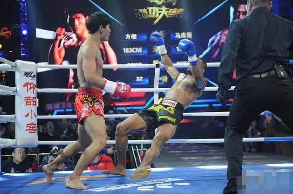 2015年北京时间1月31日晚,在《武林风》跨年功夫盛典的擂台上,中国散打运动员方便两回合TKO世界泰拳冠军西蒙-马库斯,凭借全场(两个回合)中的4次重击,上演了一幕“一边倒”的完美KO胜利,同时也继续蝉联了自己在武林风拳台上的不败金身。