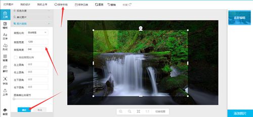 2.点击按钮上传图片,图片上传后在左侧菜单栏中可以自由设置图片裁剪的大小,输入数值后即可决定裁剪区域大小,并且可以调整裁剪圆角;同时支持拖动裁剪框来改变裁剪区域的大小自由裁剪图片,裁剪区域确定后,点击确定按钮后自动裁剪图片;这里我们以5寸生活照为例,在宽度处输入1200,高度输入840,确定了裁剪框大小以后,调整裁剪框位置,然后点击确定按钮。