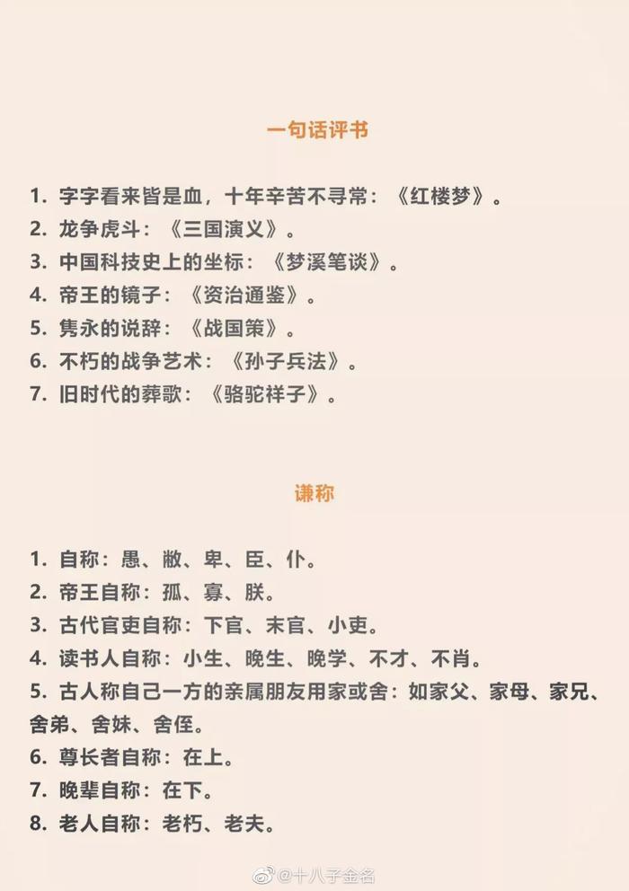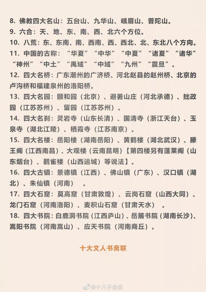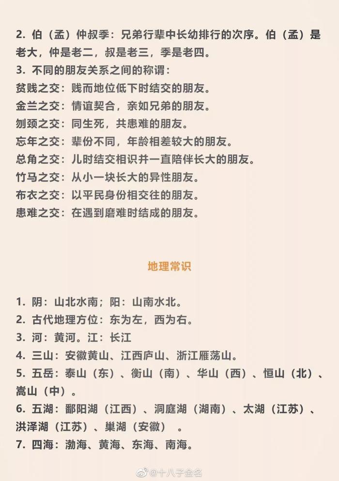 这是我见过最全面的国学文化常识大全了,不得不说整理的太用心了!每一条都是文化精髓,抓紧时间背一背,随时能用上,全部背熟你就厉害了!!!