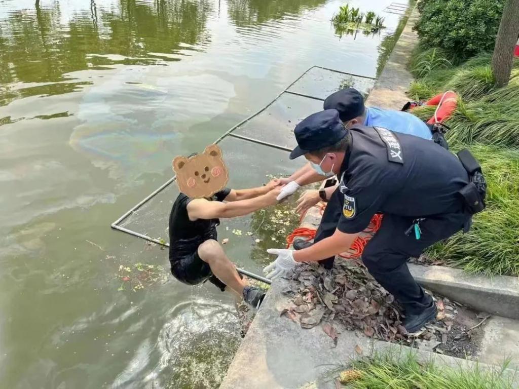 " 人有没有受伤?车内还有其他人吗?" 民警沈振远一边询问一边和童正军立即拿出警车内的救生绳、救生圈和救生衣,将救生绳抛给李先生,一起合力将李先生拉上了岸。