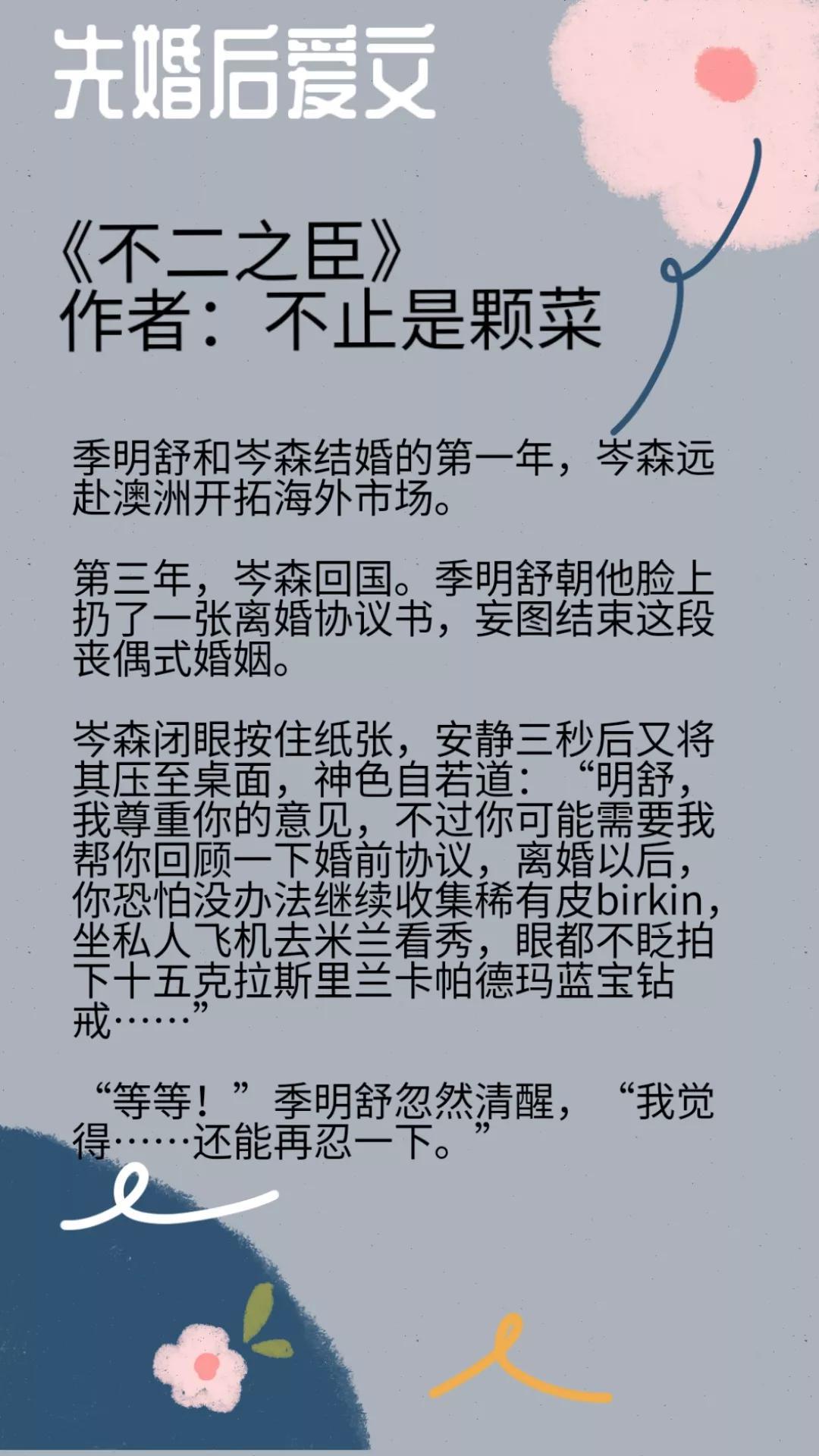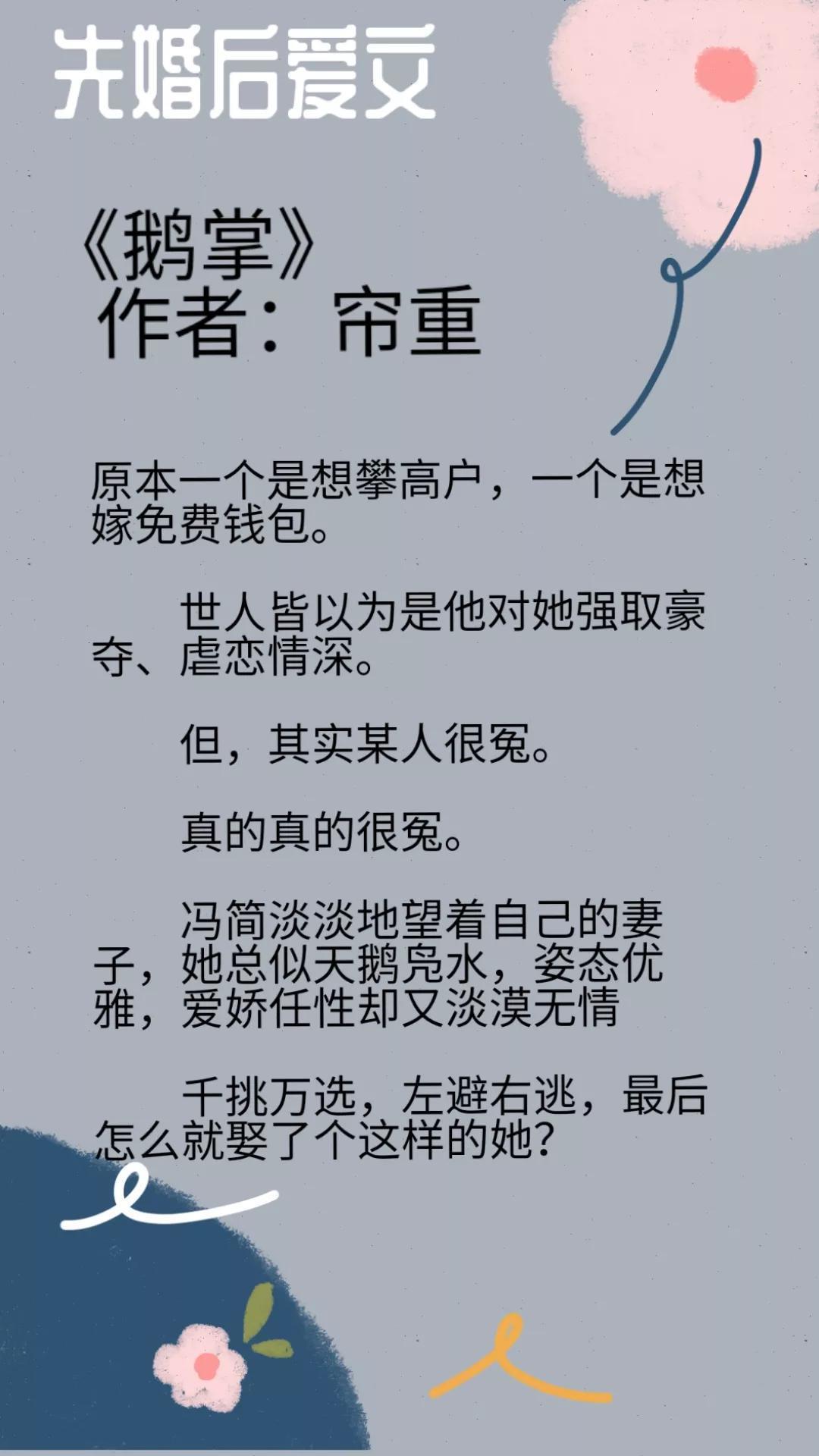 先婚后爱文推荐《鹅掌》《不二之臣》《眷》