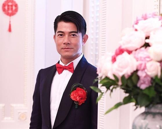 郭富城穿上帅气的新郎西装,一脸的幸福模样,不管多少不被看好的声音都烟消云散了。