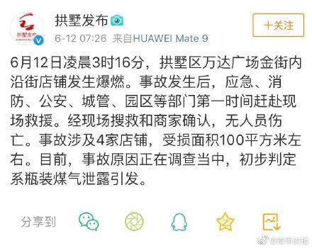 【突发!凌晨3点,杭州拱墅万达金街发生爆炸,幸无人员伤亡】6月12日凌晨3时16分,拱墅区万达广场金街内沿街店铺发生爆燃。事故发生后,应急、消防、公安、城管、园区等部门第一时间赶赴现场救援。经现场搜救和商家确认,无人员伤亡。据统计,事故涉及4家店铺,受损面积100平方米左右。目前,事故原因正在调查当中,初步判定系瓶装煤气泄漏引发。