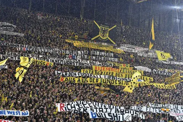 多特蒙德主场最出名的地方在于其浓厚的氛围,有无数的人都曾在网上发问,多特蒙德主场有多恐怖?每当多特蒙德比赛,看台上基本爆满,座无虚席。其中南看台最为恐怖,超过25000名球迷们全都是站着观看比赛,组成一片黄色的海洋,这里也是多特蒙德死忠球迷的集中地。说一个令人震惊的事实,从1935年起到2006年,71年的时间里德国队从未在威斯特法伦球场输过比赛。