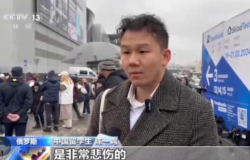 26 岁的陈一鸣在俄罗斯圣彼得堡留学。22 日莫斯科州音乐厅恐袭事件发生时,他正在音乐厅旁边建筑内的美食广场就餐,事发后第一时间接受过媒体采访。24 日,他也来到悼念活动现场哀悼遇难者。