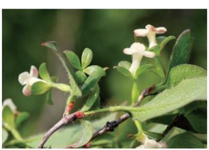 茎及枝具6条沟,幼枝被倒生硬毛或无毛。叶矩圆形至矩圆状披针形,全缘或中部以上羽状浅裂而具1~4对粗齿,上面深绿色,下面绿白色,两面疏被柔毛或无毛。花2朵,腋生,有小苞片3,萼片4;花冠管状,淡黄色。瘦果状核果。花期5月,果期7月。