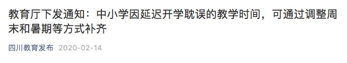 今年2月,四川就曾下发通知明确:中小学因延迟开学耽误的教学时间,可通过调整周末和暑期等方式补齐。