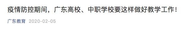 2月,广东省教育厅发布《关于做好疫情防控期间高等学校和中等职业学校教学工作的通知》称,各学校要按照确保教学时间的总体目标,充分利用信息化手段,在学生不返校、不见面的前提下,组织做好学生毕业设计(论文)指导工作,并尽量保障学生不在校期间访问学术期刊网和查询下载资料的需求。因推迟开学延误的教学时间,应主要通过调减周末时间、压缩暑期假期等方式进行补偿。