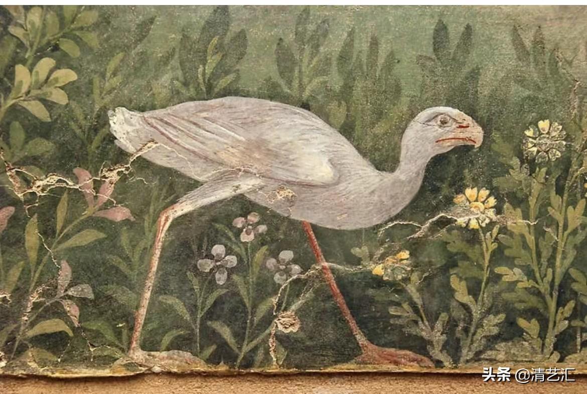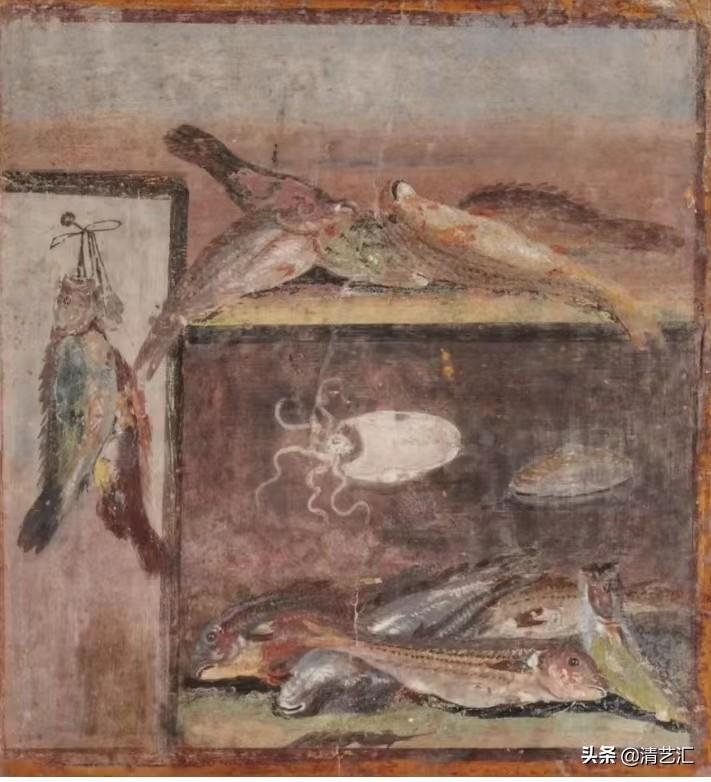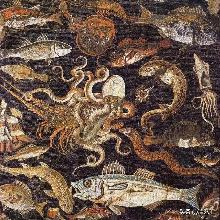 还有两千多年前,庞贝古城壁画上的花鸟植物、动物镶嵌壁画,今天看来仍然十分精致……