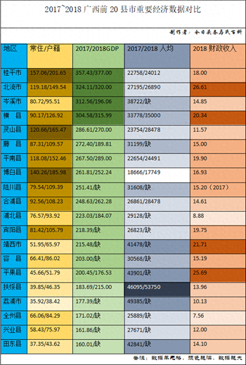 广西20大县市GDP总量排名,财政收入、人均GDP数据对比