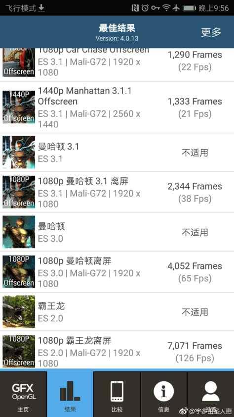 至于GPU方面,专业的GPU性能测试软件GFXBench中,骁龙835配备的Adreno 540曼哈顿离屏测试成绩为61.8fps,而霸王龙(T-Rex)则是达到了114.9fps。对应的麒麟970配备的Mail G72MP12为65fps和125fps,同样差距很小,都在10帧之内几乎可以忽略。