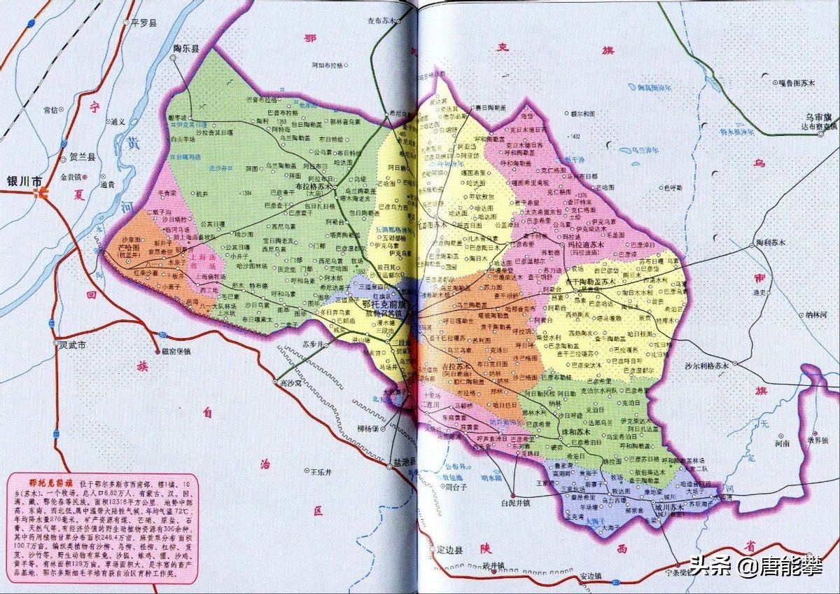 1.3户籍人口。鄂托克前旗面积如此大,却只分为4个镇,原因是只有8万多人口,比霍林郭勒市还少2000。东胜区、达拉特旗和准格尔旗3县互为邻居,都是14到15个乡镇街,且人口较多,东胜区27万,准格尔旗33万,达拉特旗37万。计算人口密度,霍林郭勒市与东胜区在同一水准,都在195人每平方公里左右,高于全国平均水平(151人每km2)。达拉特旗和准格尔旗在同一水准,都约在45人每平方公里。鄂托克前旗人口人口稀少,7人每km2。