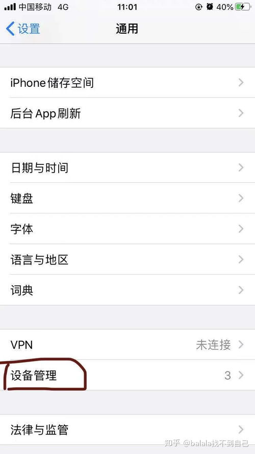 5. 在“常规”选项下滑动,找到“设备管理”或“描述文件与设备管理”。