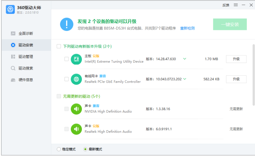 1.首先,我们应该使用电脑中的声卡驱动来推动专用工具的升级。根据360驱动大师的在线监控升级,360驱动大师可以无限速免费下载,还可以帮助电脑更新过程中需要升级更新的相关驱动。安装下载驱动大师后,在360驱动大师推动的安装界面中,一般来说,我们必须升级和更新所有的驱动程序。