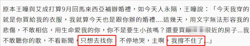 此外,王瞳也表示:只想去找你,不停得哭,我撑不住了......