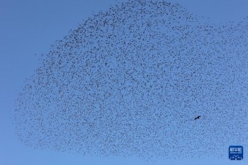 每年一二月份,大量椋鸟飞抵以色列越冬。