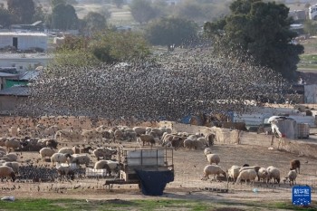 2月16日,椋鸟翔集以色列南部城市贝尔谢巴上空。
