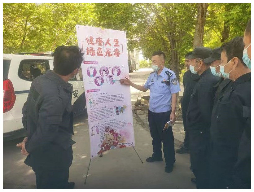 民警悬挂宣传横幅、宣传展板,向群众发放《中华人民共和国禁毒法》宣传资料、讲解毒品的危害,让群众了解到吸食毒品给自己和家人带来的危害及国家禁止种植毒品原植物的有关法律法规,呼吁群众珍爱生命,远离毒品。