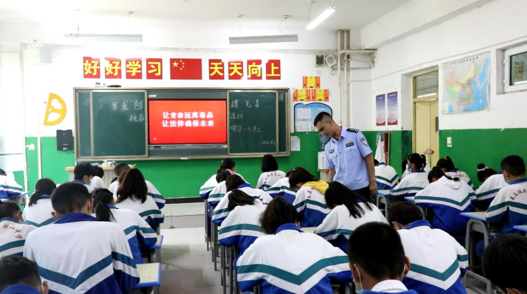 禁毒民警对群众、学生进行宣讲,回顾中国禁毒的辉煌历史和西方列强利用毒品侵略中国的屈辱史,积极倡导群众铭记历史国耻,不辱使命,抵制毒品,复兴中华。
