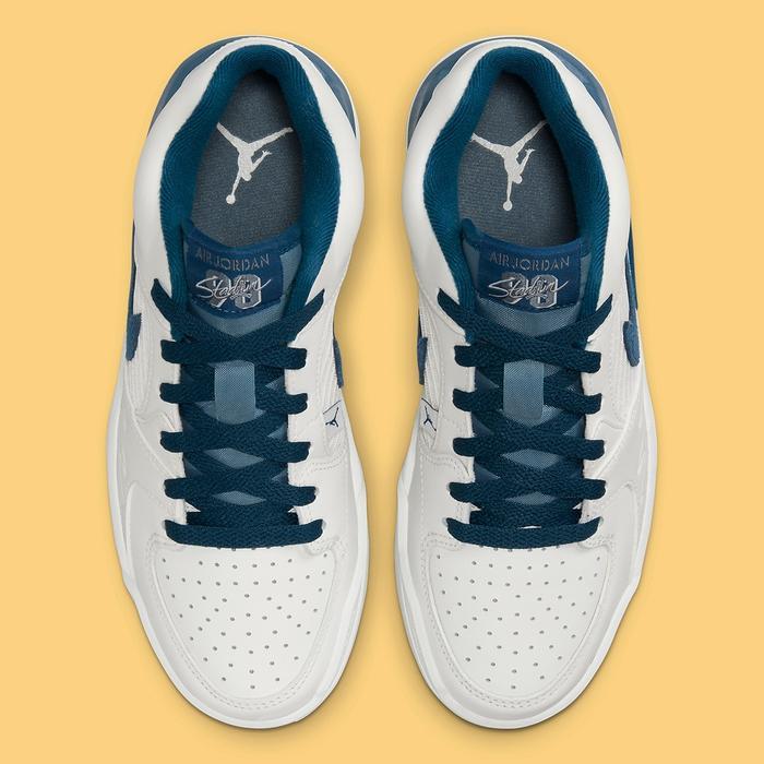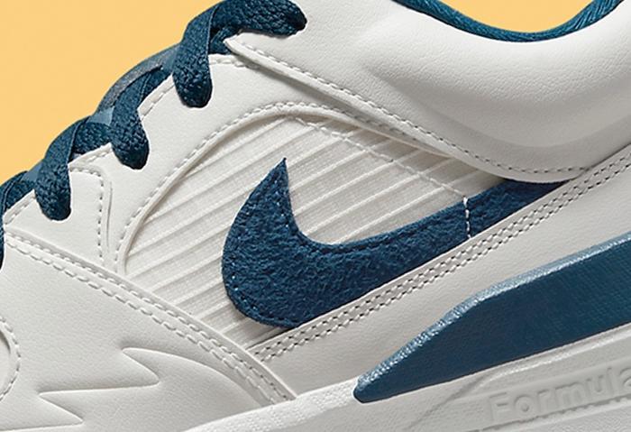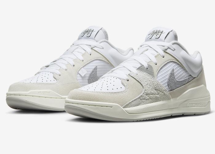鞋身中部注入 Air Jordan 4 的轻量化网格设定,鞋帮位置还原 Air Jordan 5 的凸起设计。