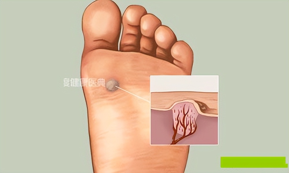 跖疣:跖疣是由人类乳多空病毒(主要为HPV)感染引起,多发生于足底部的寻常疣,是一种传染性疾病。