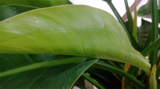 金钻蔓绿绒对水分的要求较高,盆土一般要保持湿润的状态,由于它的耐旱性较差,因此一周需要浇水三次左右,但是每次的浇水量不宜过多,可以遵守“少量多施”的原则。而在温度较高的环境下,植物不仅需要多浇水,而且在环境的周围还需喷洒一定的水雾来避免其叶子的枯萎。若是浇水过量,植物的根茎处很容易出现烂根的情况,并且叶子也会变得肥厚、光色度极差,还有可能诱发叶斑病等疾病。