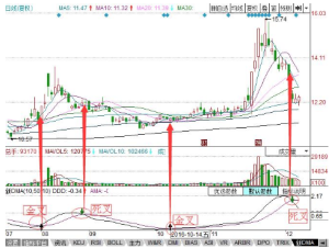可以看到当金叉时,就发出介入信号,股票接下来都有一个不错的涨势。当死叉是,就发出卖出信号,之后股票也呈下跌走势。所以DMA买卖点的指导意义也是显而易见的。
