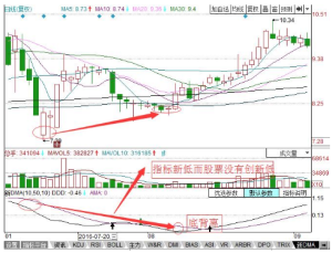 当股价K线图上的股票走势一峰比一峰低,股价在向下跌,而DMA指标图上的DMA曲线和AMA曲线的走势是在低位一底比一底低,这叫低背离现象。底背离现象一般是股价将低位反转的信号,表明股价中短期内即将上涨,是买入的信号。相比于其它技术指标的背离现象而言,DMA指标出现的机会比较少,但如果在实际走势中,一旦DMA指标出现背离现象,它的准确性则更高。