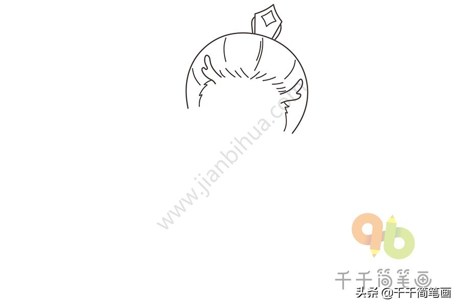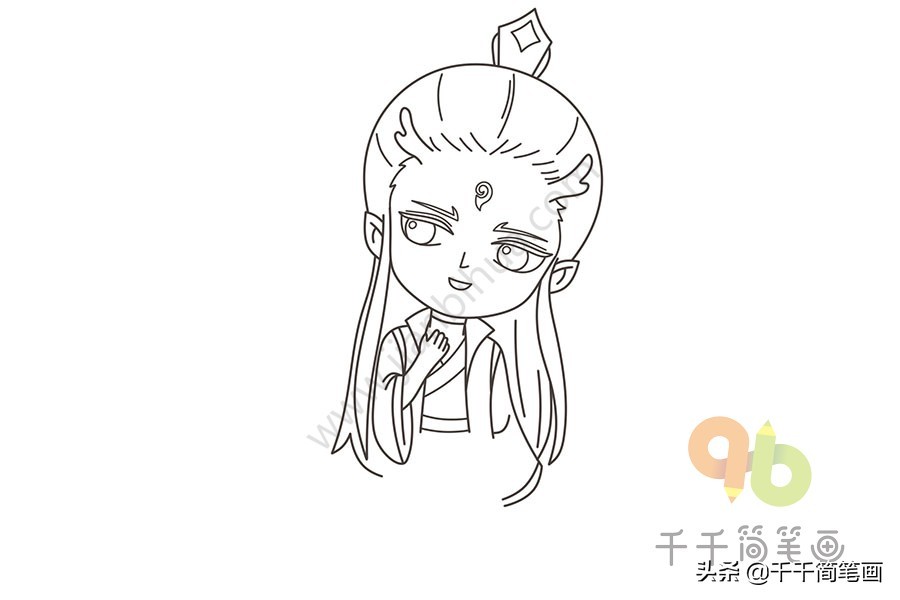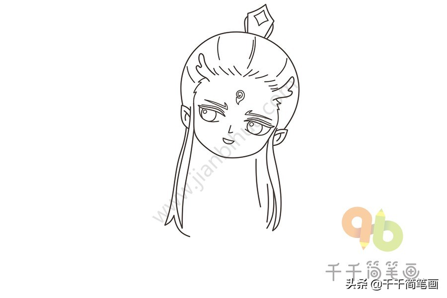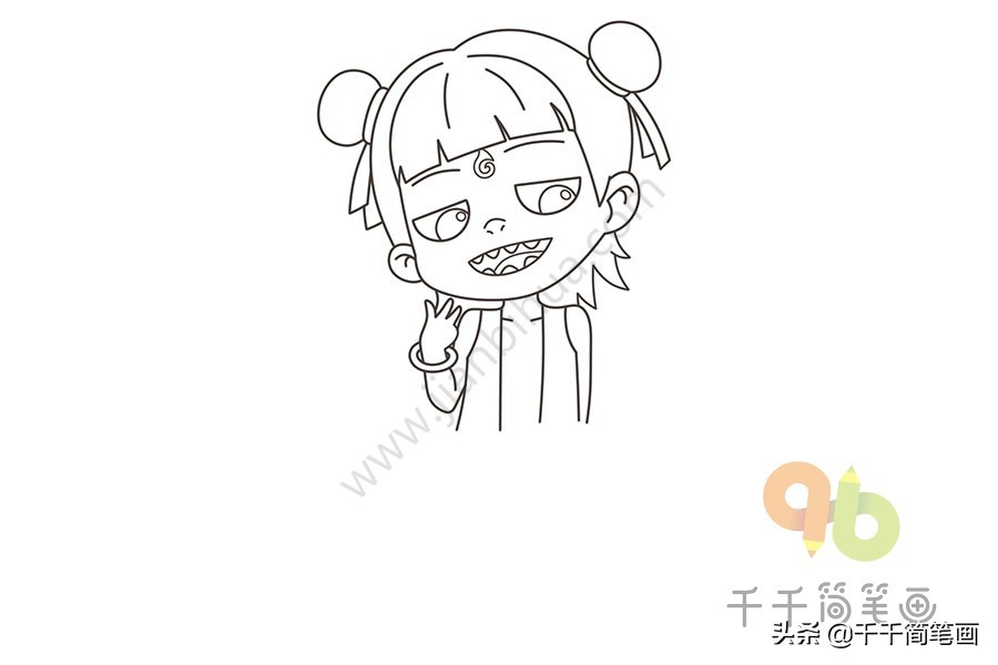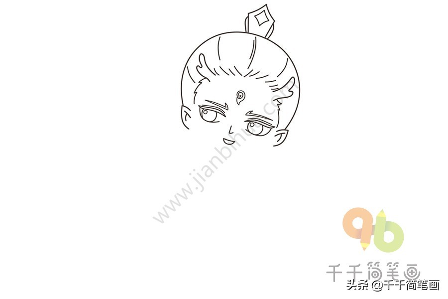 2.画出头部,头顶的两侧画出哪吒的两个辫子。
