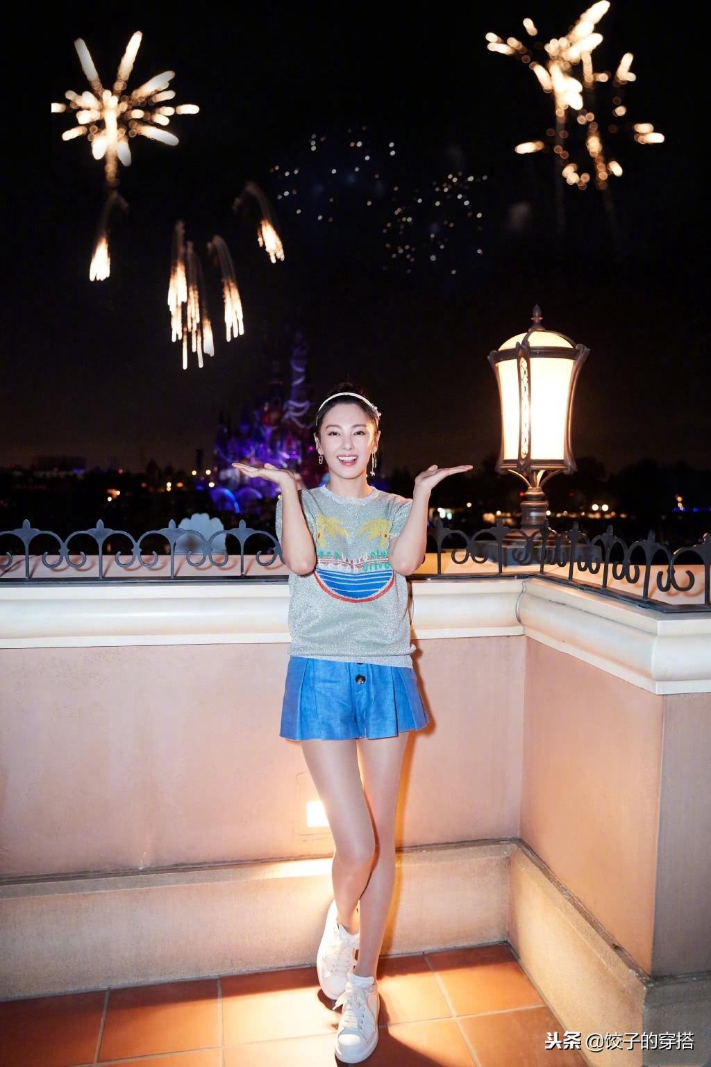 霸气御姐摇身一变俏皮少女,真是可盐可甜,灰色T恤的印花图案与蓝色裤裙同色呼应,很协调,小细节决定了高衣品,真是不假,小白鞋青春无敌,在自带打光的灯光下,一双美腿又细又长,为自己加分。