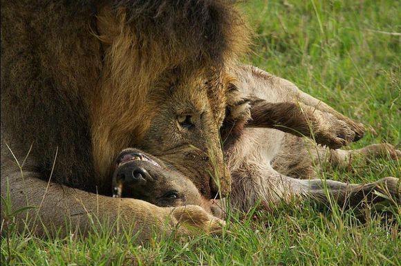 如果鬣狗想与雌狮争夺猎物,必须要达到3比1以上的数量。但若想与雄狮相比,多少只也不行。