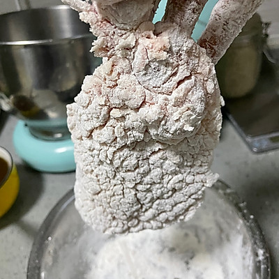 3、把大排均匀裹上干的玉米淀粉,抖掉多余淀粉