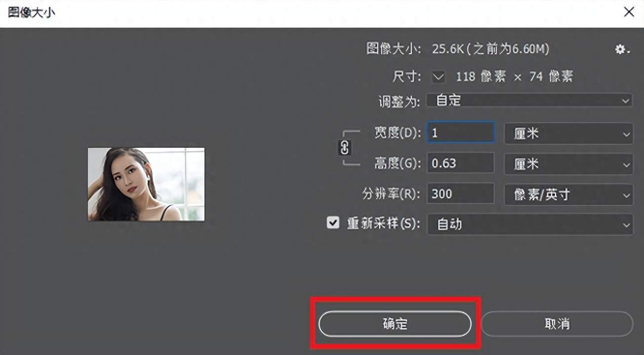 修改宽以及高之后它的kb大小就会随之改变,直到kb大小达到合适的数值之后点击【确定】,接着我们点击【文件】将图像导出就可以啦。