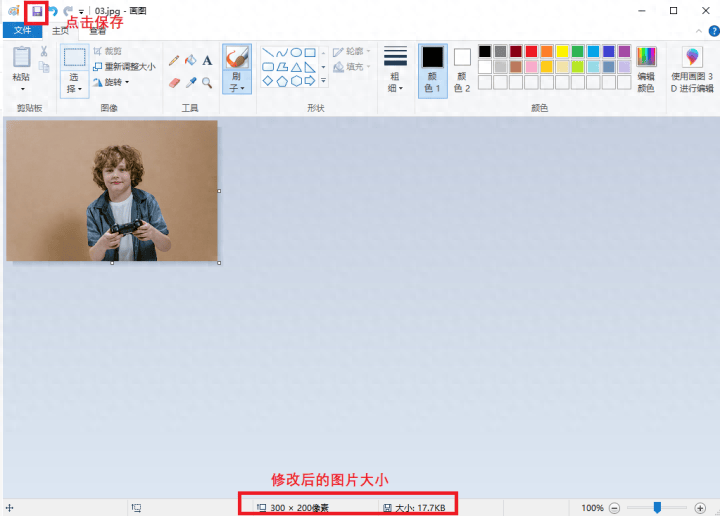 调整好之后需要点击左上角的保存键才能看到修改后的图片kb大小是多少,如果太大或者太小我们都可以重新点击再次调整。