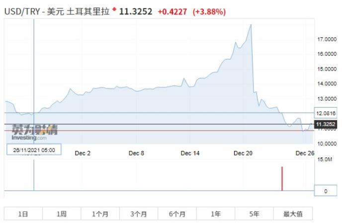 周一,里拉兑美元汇率一度跌至11.6,随后缩减跌幅至11.35。在目前的水平上,土耳其里拉仍然比去年年底贬值了35%。