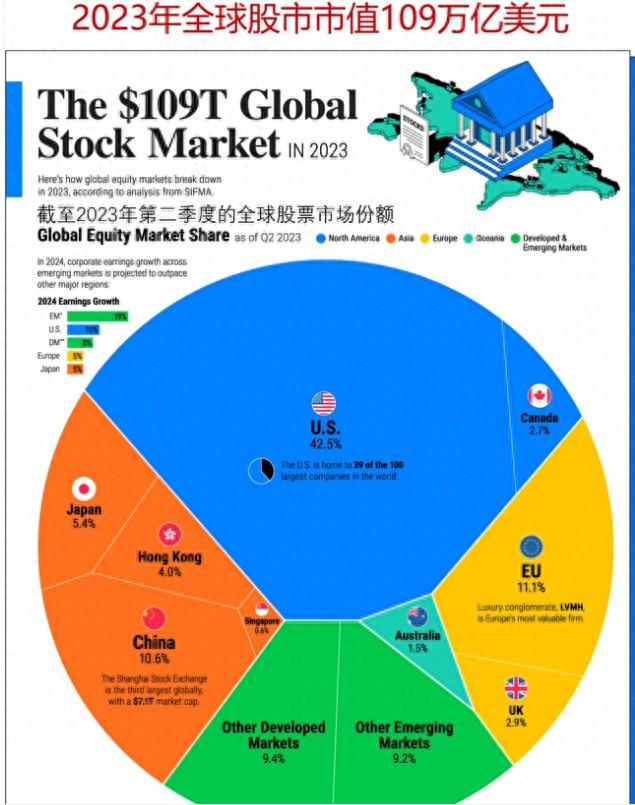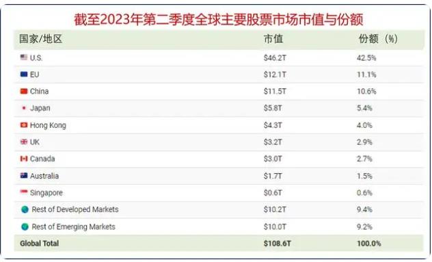 美国拥有世界上规模最大的资本市场,占全球股市总市值的42.5%,远远超过仅次于美国的欧盟(European Union)。