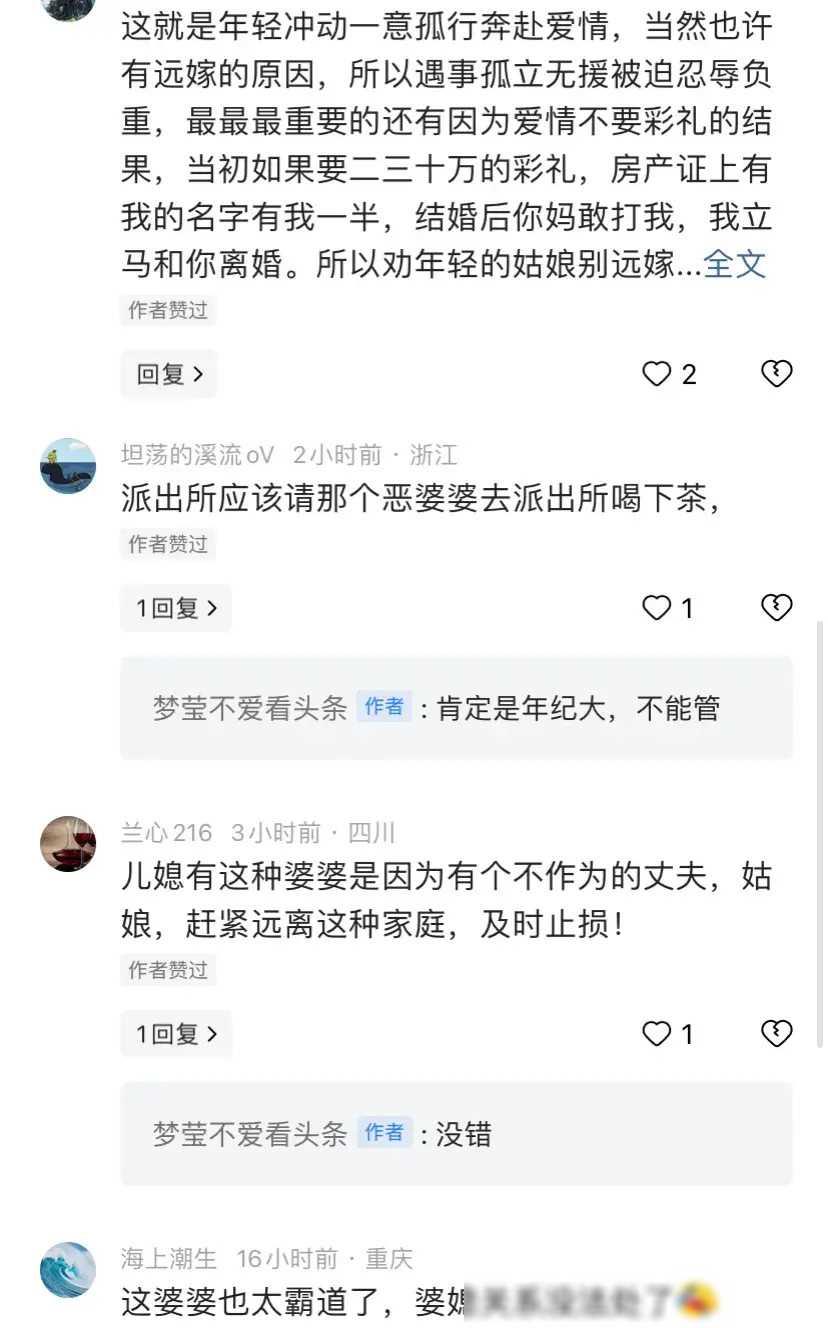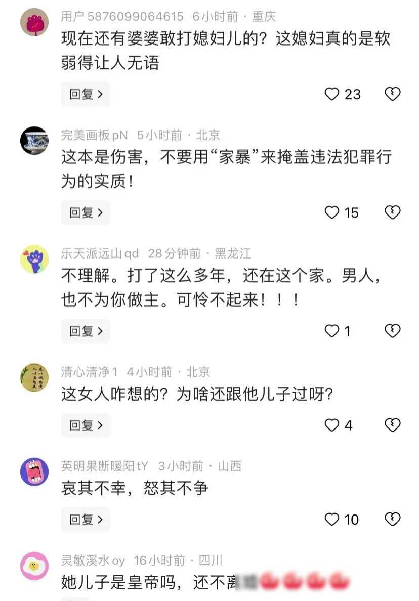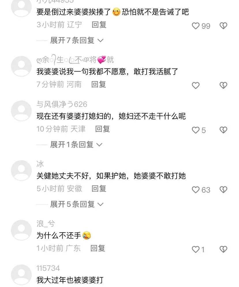 这消息简直像是从天而降的霹雳,引起了广泛的关注和热议。网友们纷纷表示震惊和愤怒,同时也感叹婆媳关系的复杂性和脆弱性。有人评论说,这种家庭暴力问题并不罕见,但真相往往被掩盖在表象之下,直到有人勇敢站出来揭露。