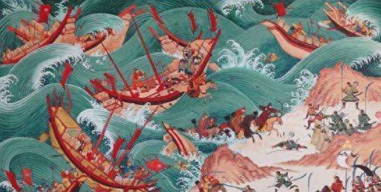 各种互联网百科上,已经列出了五次中日战争,最早可以追溯至唐朝,然后依次是元日战争、万历朝鲜战争、甲午中日战争以及现代的抗日战争。