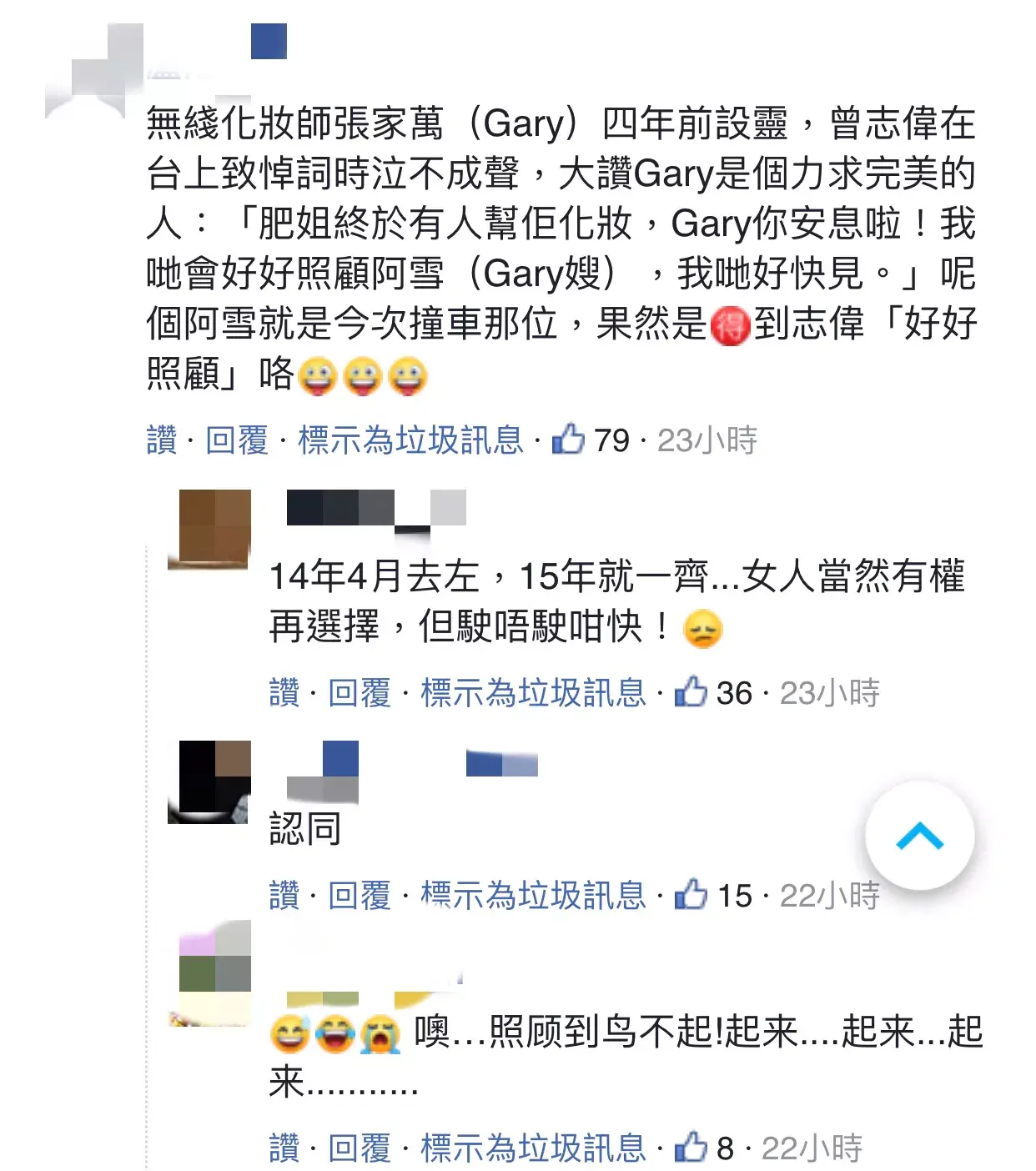 意外发生时,志伟同行还有一名40多岁李姓女友人,据知,这名同行女友人,正是两年前跟志伟同游大坂逛家品店被拍下照片的化妆师阿雪,而阿雪也是14年4月,因心脏病猝逝的无线资深化妆师张家万的太太。现在阿雪是曾志伟的御用化妆师及私人助理,而两人现时也会经常四处旅游。