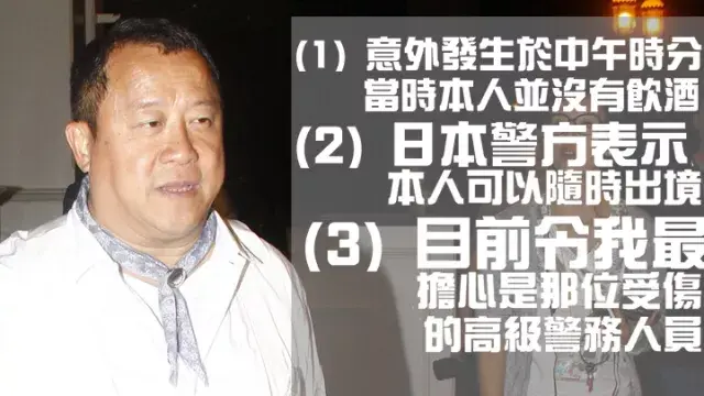 而今天曾经传出消息指开车的曾志伟曾经喝酒,并要接受酒精呼气测试,余市警察署正调查是否因为有人酒后驾驶导致意外发生,不过拒绝透露酒精测试结果。