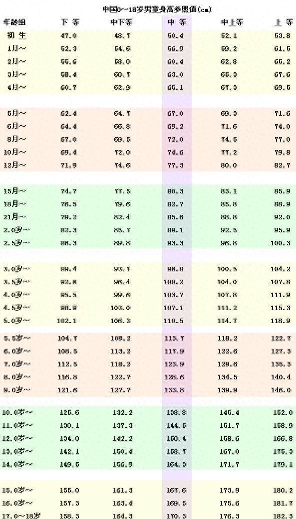 看了看我国男童身高参照值,发现11岁男孩的身高最高也不该超过160,小宇足足超过标准40厘米!其实,除了病态的过高或者过矮,孩子的身高并没有什么绝对值,在孩子各方面正常发育的情况下,可以绘制生长曲线,只要身高体重都在稳速增长就可以。