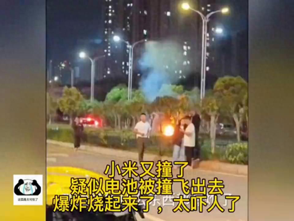 小米又撞了,疑似电池被撞飞出去,爆炸烧起来了,太吓人了。