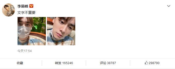 李易峰晒高清晰度帅气自拍照 颜值在线表情酷帅