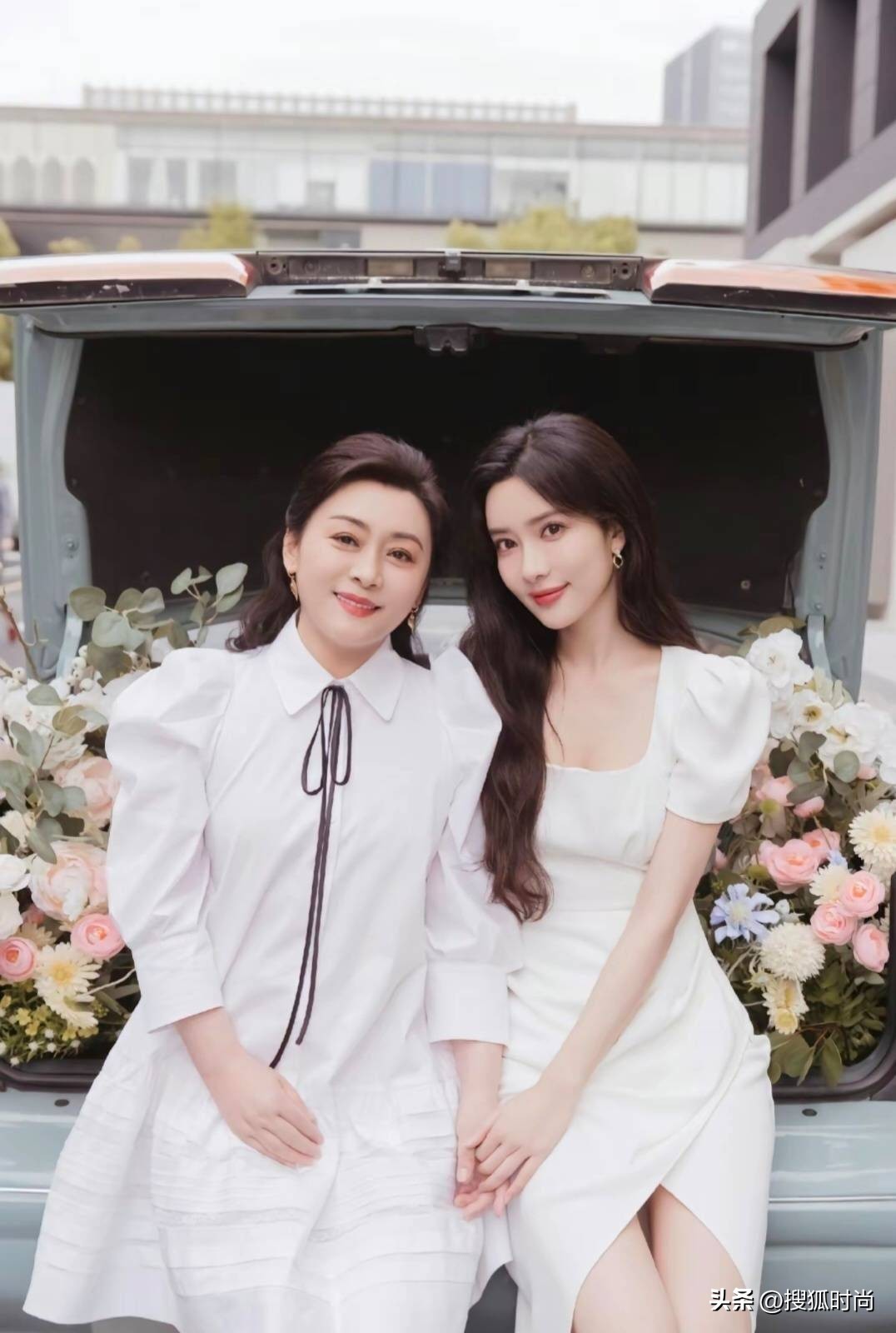 发出自己和妈妈的合照,妈妈也是大眼睛高鼻梁美女。